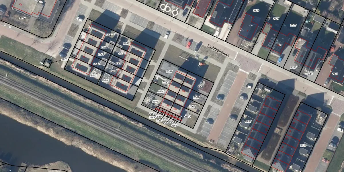 Gebruik de zoekbalk of klik op een perceel voor informatie over de adressen binnen dit perceel.