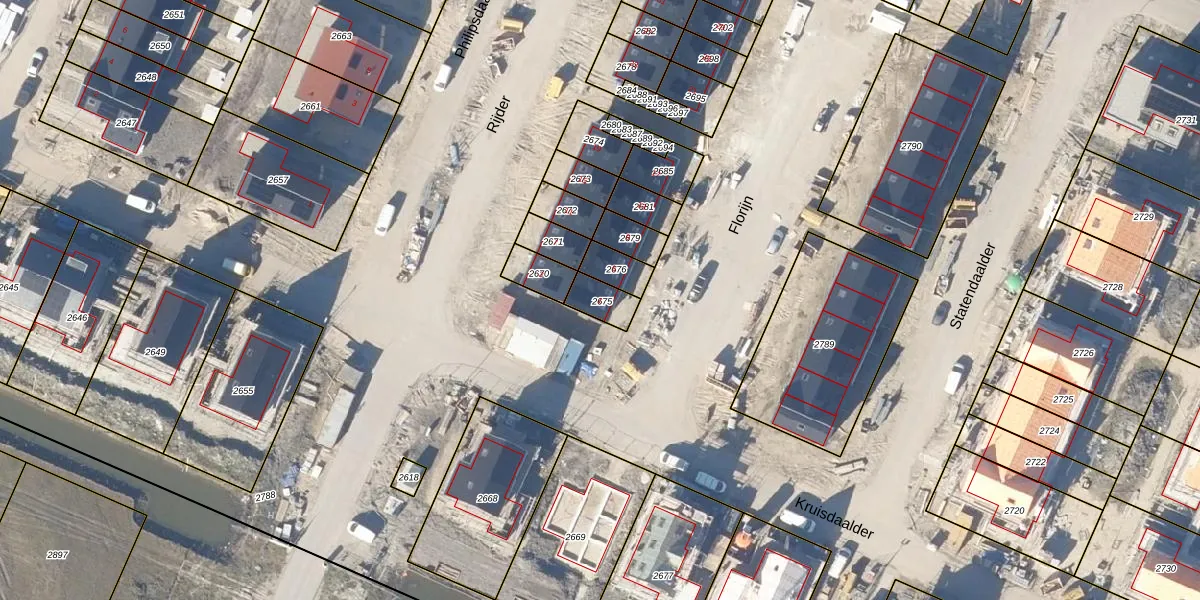 Het perceel waarop Florijn 1 staat heeft een oppervlakte van 68 m². Dit is een klein perceel. De perceeloppervlakte wordt geregistreerd door het Kadaster. Gedetailleerde informatie over de maten van dit perceel kunt u vinden in het rapport Kadastrale kaart met maatvoering van Florijn 1.