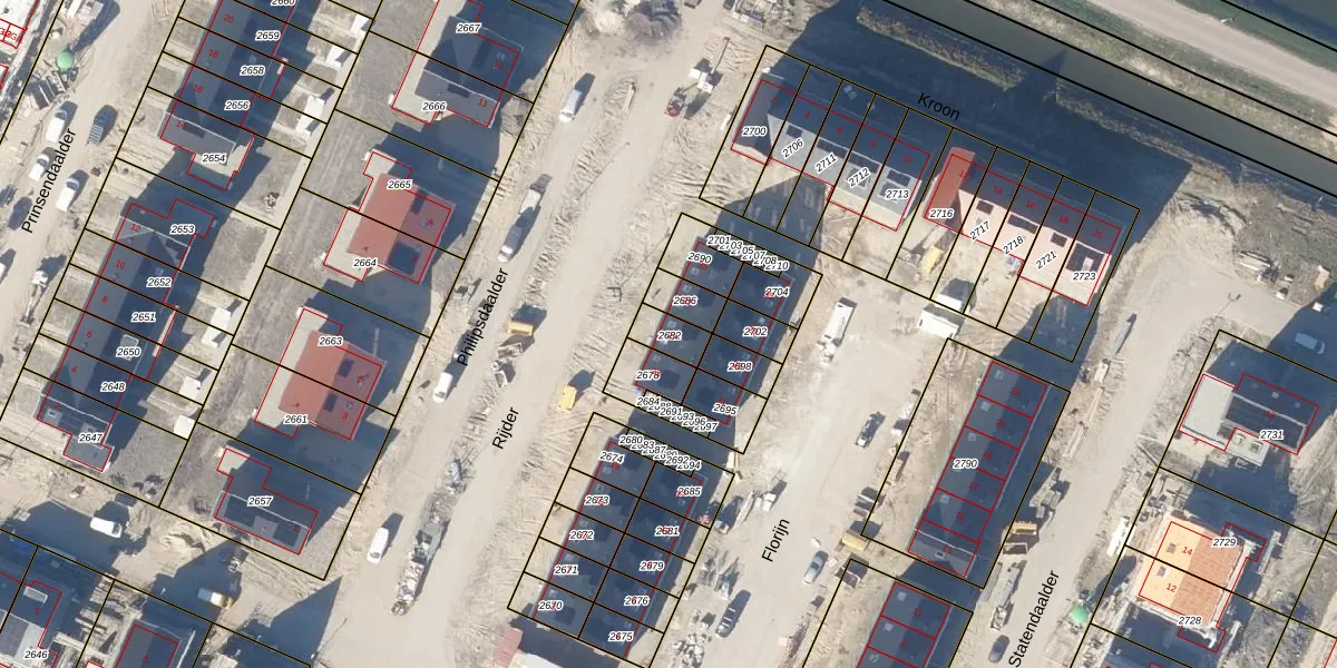 Het perceel waarop Florijn 27 staat heeft een oppervlakte van 65 m². Dit is een klein perceel. De perceeloppervlakte wordt geregistreerd door het Kadaster. Gedetailleerde informatie over de maten van dit perceel kunt u vinden in het rapport Kadastrale kaart met maatvoering van Florijn 27.