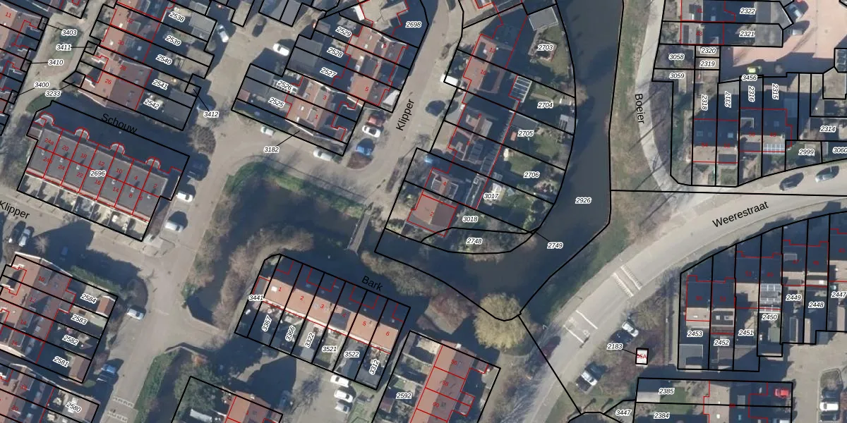 Gebruik de zoekbalk of klik op een perceel voor informatie over de adressen binnen dit perceel.