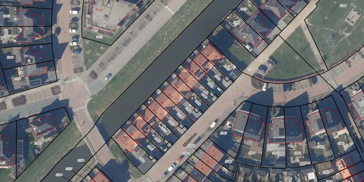 Het perceel waarop Middeloo 34 staat heeft een oppervlakte van 165 m². Dit is een middelgroot perceel. De perceeloppervlakte wordt geregistreerd door het Kadaster. Gedetailleerde informatie over de maten van dit perceel kunt u vinden in het rapport Kadastrale kaart met maatvoering van Middeloo 34.