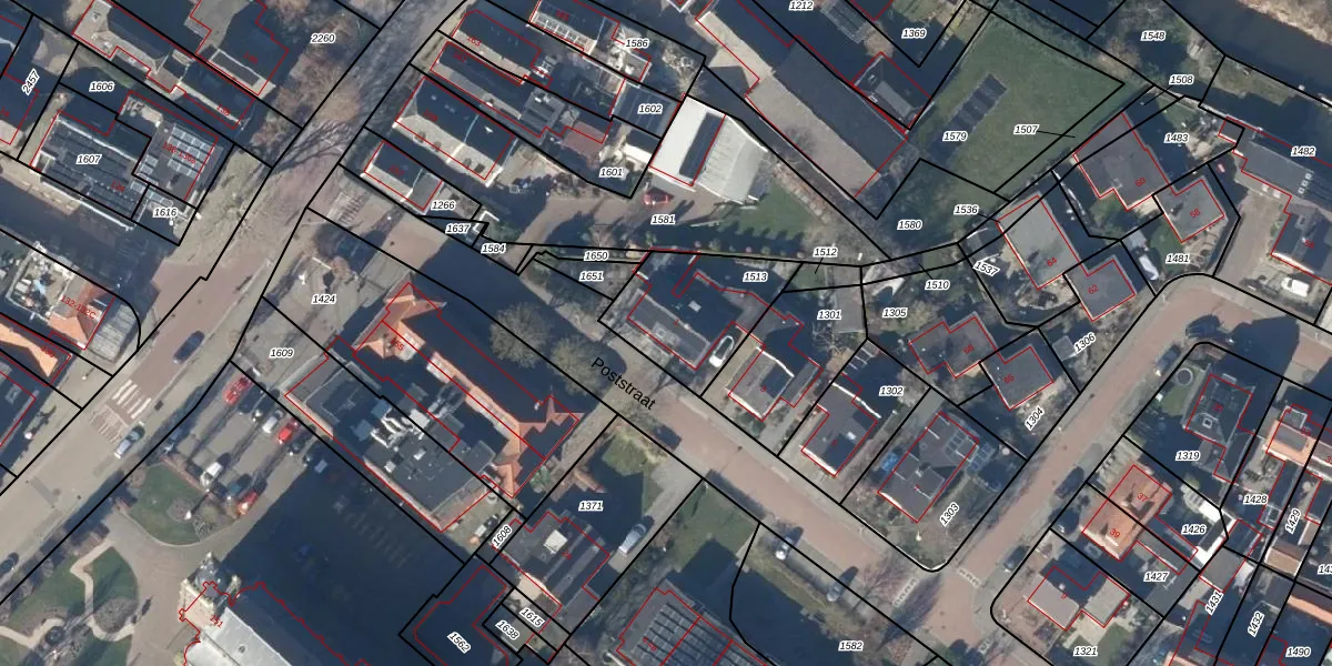Poststraat 1 is gelegen op kadastraal perceel ODM01B1513. Deze kadastrale aanduiding is uniek en wordt gebruikt door het Kadaster om eigendomsrechten en andere zakelijke rechten vast te leggen. Het perceel maakt onderdeel uit van de kadastrale gemeente Obdam.