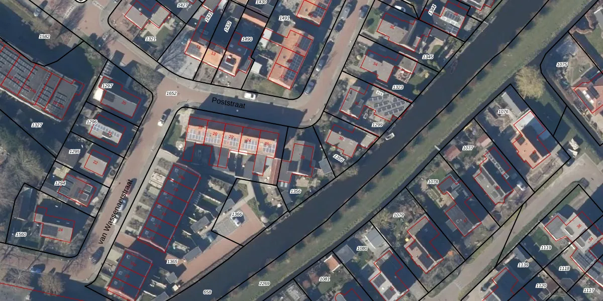 Gebruik de zoekbalk of klik op een perceel voor informatie over de adressen binnen dit perceel.