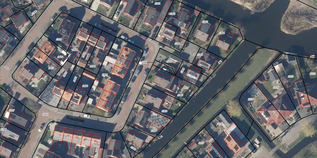 Het perceel waarop Poststraat 36 staat heeft een oppervlakte van 408 m². Dit is een groot perceel. De perceeloppervlakte wordt geregistreerd door het Kadaster. Gedetailleerde informatie over de maten van dit perceel kunt u vinden in het rapport Kadastrale kaart met maatvoering van Poststraat 36.