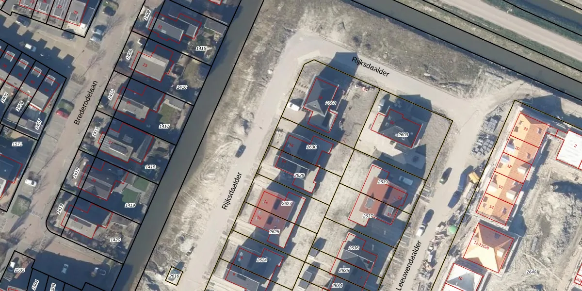 Gebruik de zoekbalk of klik op een perceel voor informatie over de adressen binnen dit perceel.