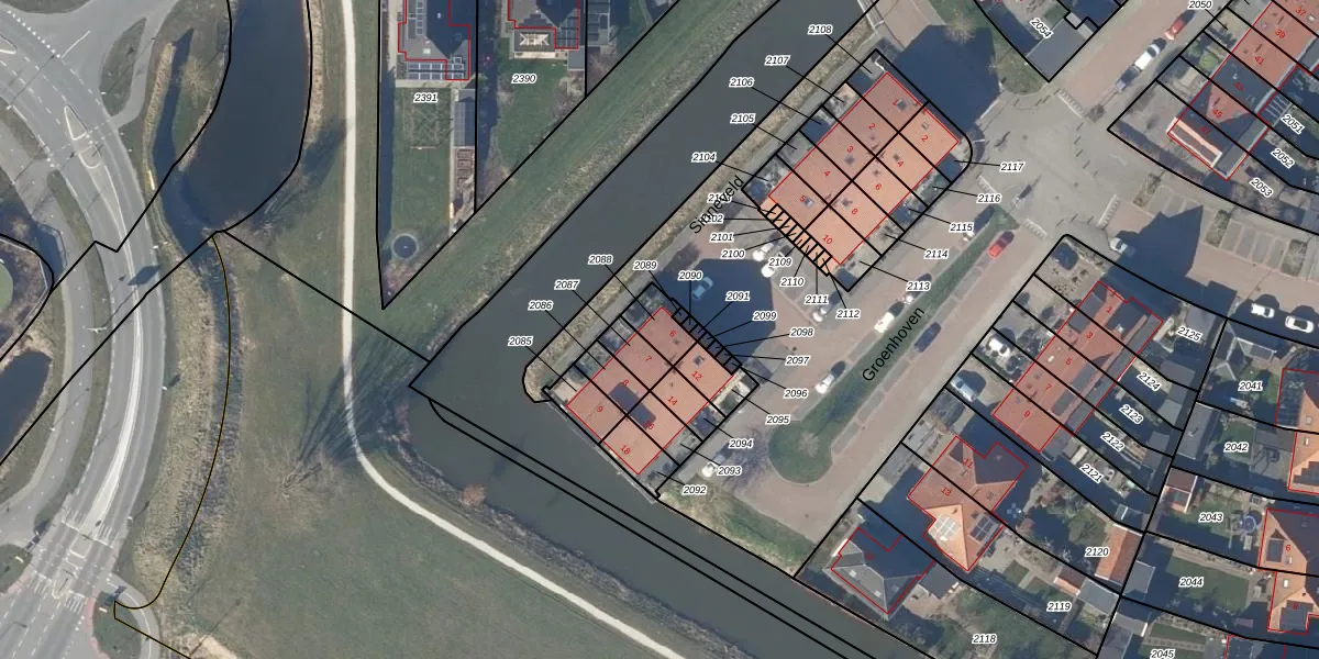 Gebruik de zoekbalk of klik op een perceel voor informatie over de adressen binnen dit perceel.