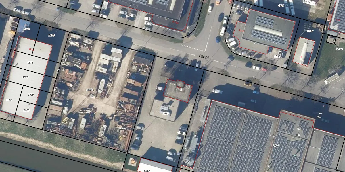 Het perceel waarop Tocht 9-A staat heeft een oppervlakte van 1770 m². Dit is een zeer groot perceel. De perceeloppervlakte wordt geregistreerd door het Kadaster. Gedetailleerde informatie over de maten van dit perceel kunt u vinden in het rapport Kadastrale kaart met maatvoering van Tocht 9-A.