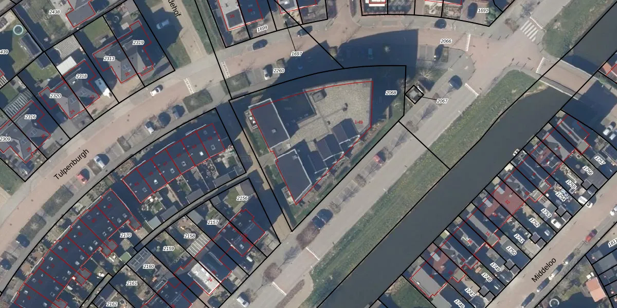 Het perceel waarop Tulpenburgh 35 staat heeft een oppervlakte van 1730 m². Dit is een zeer groot perceel. De perceeloppervlakte wordt geregistreerd door het Kadaster. Gedetailleerde informatie over de maten van dit perceel kunt u vinden in het rapport Kadastrale kaart met maatvoering van Tulpenburgh 35.