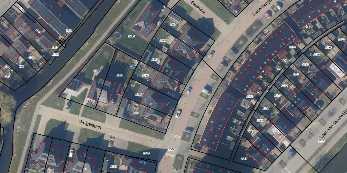Gebruik de zoekbalk of klik op een perceel voor informatie over de adressen binnen dit perceel.