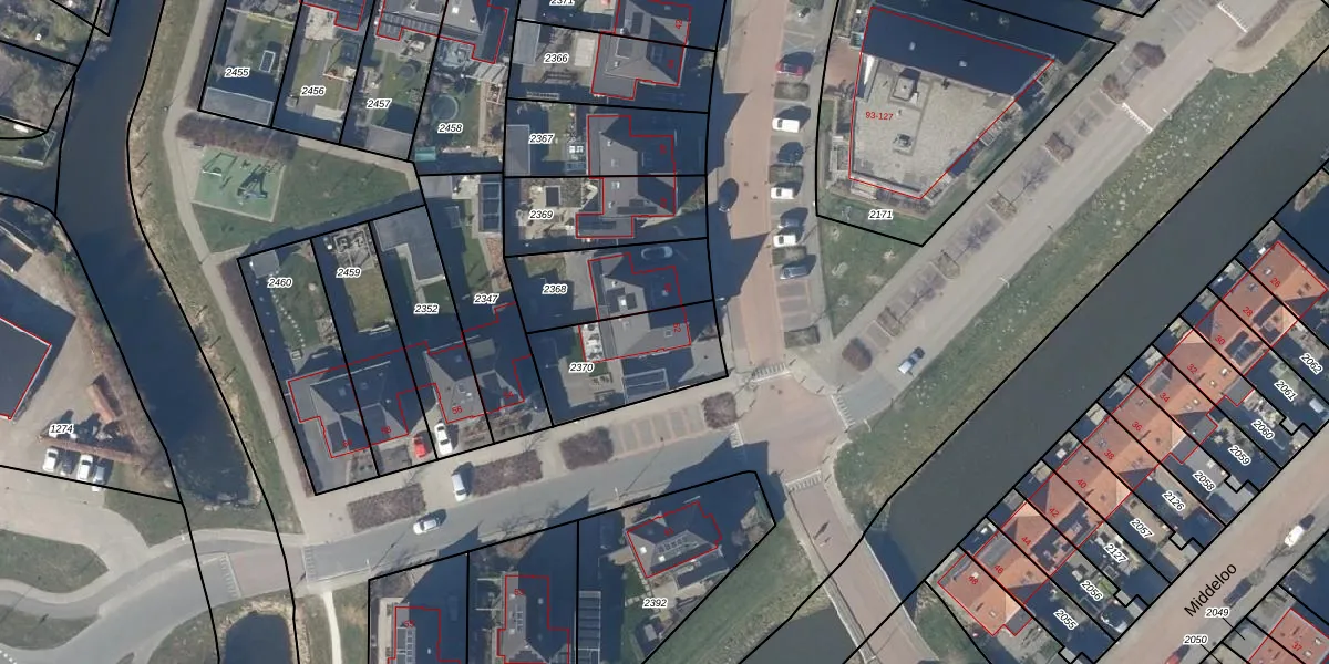 Gebruik de zoekbalk of klik op een perceel voor informatie over de adressen binnen dit perceel.