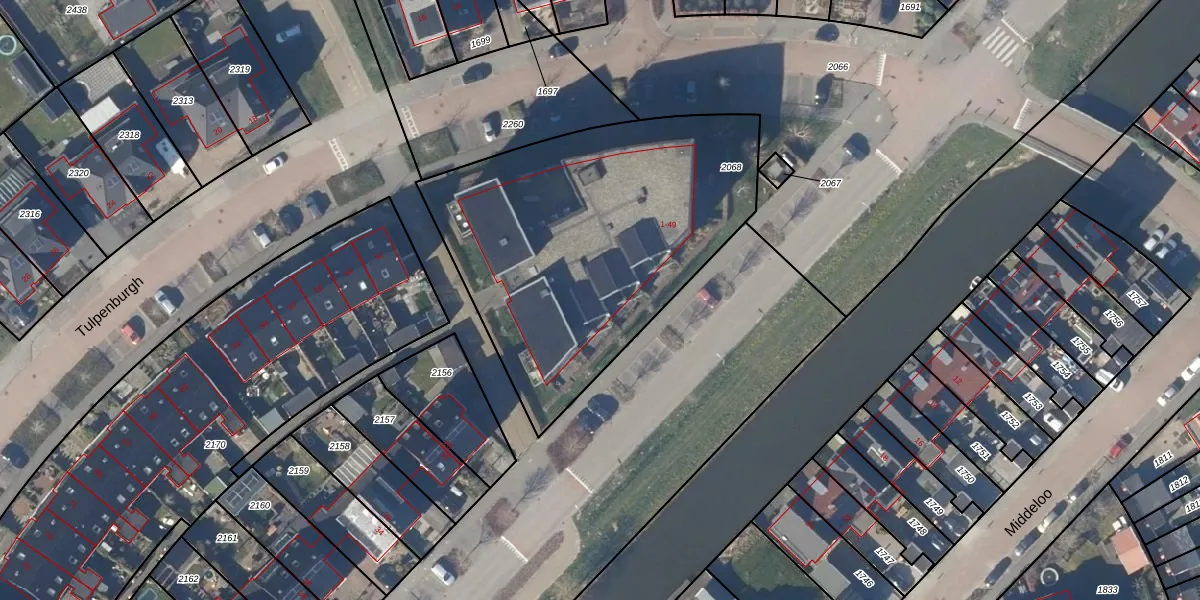 Het perceel waarop Tulpenburgh 7 staat heeft een oppervlakte van 1730 m². Dit is een zeer groot perceel. De perceeloppervlakte wordt geregistreerd door het Kadaster. Gedetailleerde informatie over de maten van dit perceel kunt u vinden in het rapport Kadastrale kaart met maatvoering van Tulpenburgh 7.