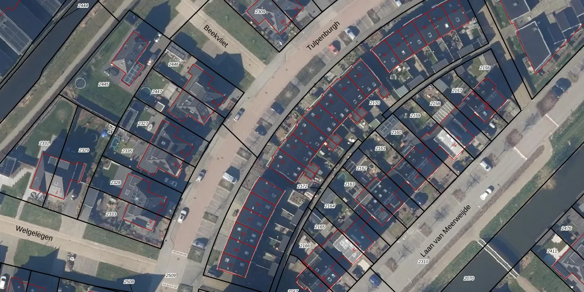 Het perceel waarop Tulpenburgh 73 staat heeft een oppervlakte van 3010 m². Dit is een zeer groot perceel. De perceeloppervlakte wordt geregistreerd door het Kadaster. Gedetailleerde informatie over de maten van dit perceel kunt u vinden in het rapport Kadastrale kaart met maatvoering van Tulpenburgh 73.