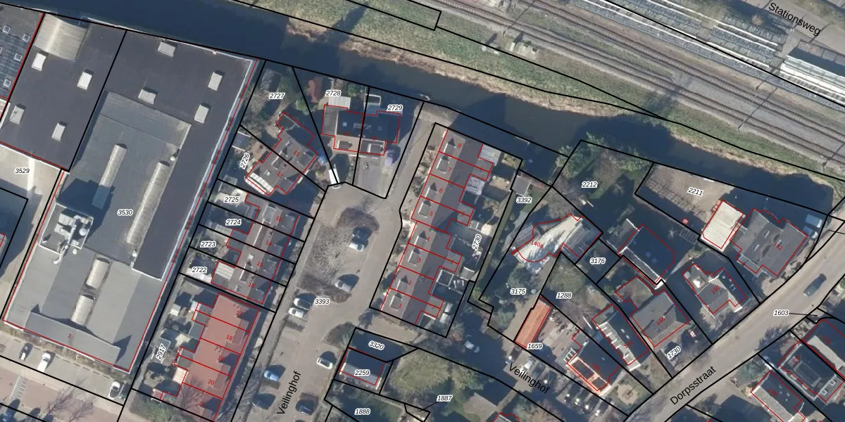 Het perceel waarop Veilinghof 5 staat heeft een oppervlakte van 999 m². Dit is een groot perceel. De perceeloppervlakte wordt geregistreerd door het Kadaster. Gedetailleerde informatie over de maten van dit perceel kunt u vinden in het rapport Kadastrale kaart met maatvoering van Veilinghof 5.