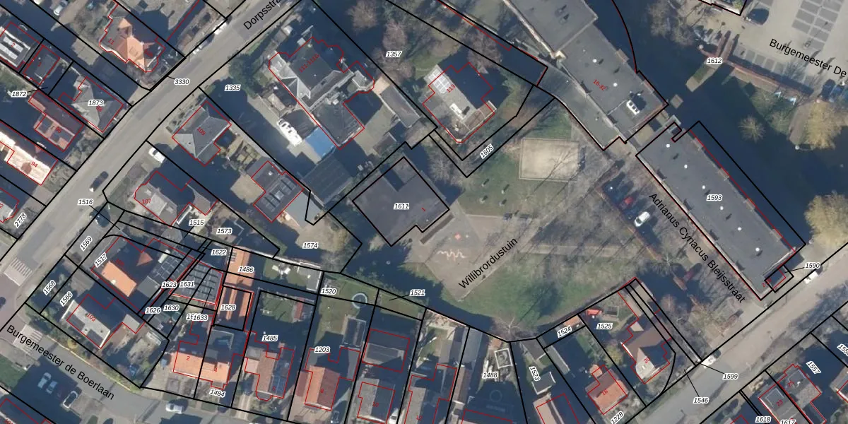 Het perceel waarop Willibrordustuin 1 staat heeft een oppervlakte van 245 m². Dit is een middelgroot perceel. De perceeloppervlakte wordt geregistreerd door het Kadaster. Gedetailleerde informatie over de maten van dit perceel kunt u vinden in het rapport Kadastrale kaart met maatvoering van Willibrordustuin 1.