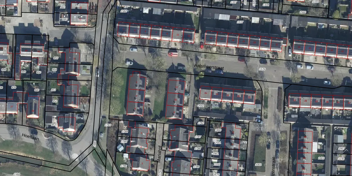 Het perceel waarop Aalsmeerstraat 12 staat heeft een oppervlakte van 2322 m². Dit is een zeer groot perceel. De perceeloppervlakte wordt geregistreerd door het Kadaster. Gedetailleerde informatie over de maten van dit perceel kunt u vinden in het rapport Kadastrale kaart met maatvoering van Aalsmeerstraat 12.