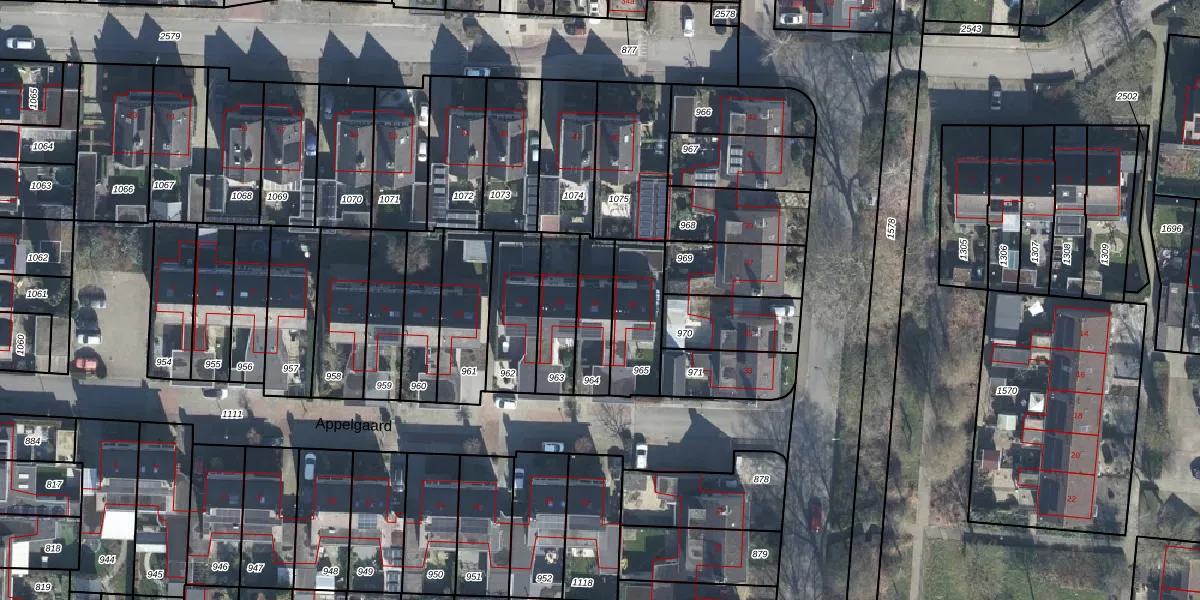 Het perceel waarop Appelgaard 21 staat heeft een oppervlakte van 162 m². Dit is een middelgroot perceel. De perceeloppervlakte wordt geregistreerd door het Kadaster. Gedetailleerde informatie over de maten van dit perceel kunt u vinden in het rapport Kadastrale kaart met maatvoering van Appelgaard 21.
