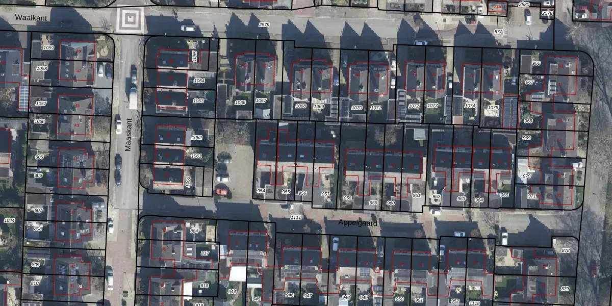 Gebruik de zoekbalk of klik op een perceel voor informatie over de adressen binnen dit perceel.