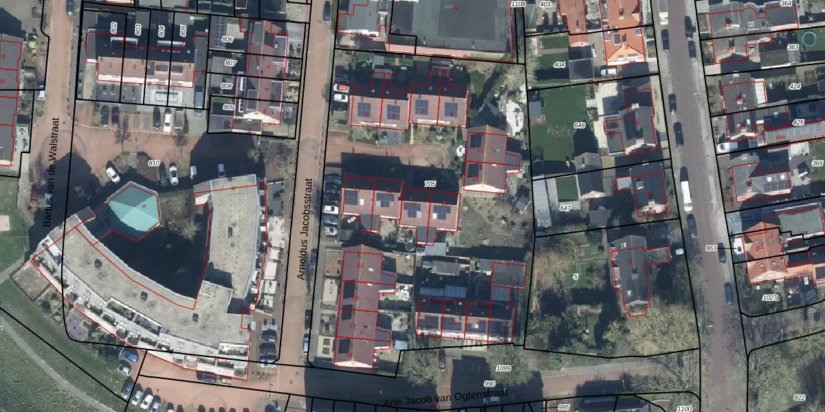 Het perceel waarop Arnoldus Jacobsstraat 17 staat heeft een oppervlakte van 3710 m². Dit is een zeer groot perceel. De perceeloppervlakte wordt geregistreerd door het Kadaster. Gedetailleerde informatie over de maten van dit perceel kunt u vinden in het rapport Kadastrale kaart met maatvoering van Arnoldus Jacobsstraat 17.