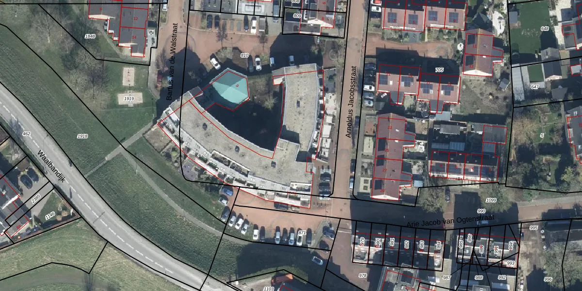 Het perceel waarop het adres ligt is OTN00-E-810. De afkorting 'OTN00' staat voor kadastrale gemeente Ochten. Het perceel is kleiner dan gemiddeld in Ochten. Het perceel is 3199 m² groot, terwijl het gemiddelde ligt op 3976,23 m². Het kleinste perceel in de kadastrale gemeente is 1 m² groot. De grootste perceeloppervlakte is 39,6 ha. Er zijn 35 adressen aanwezig op het perceel. In de Basisregistratie Kadaster (BRK) werden de grenzen van het perceel geregistreerd op 06-09-2010.