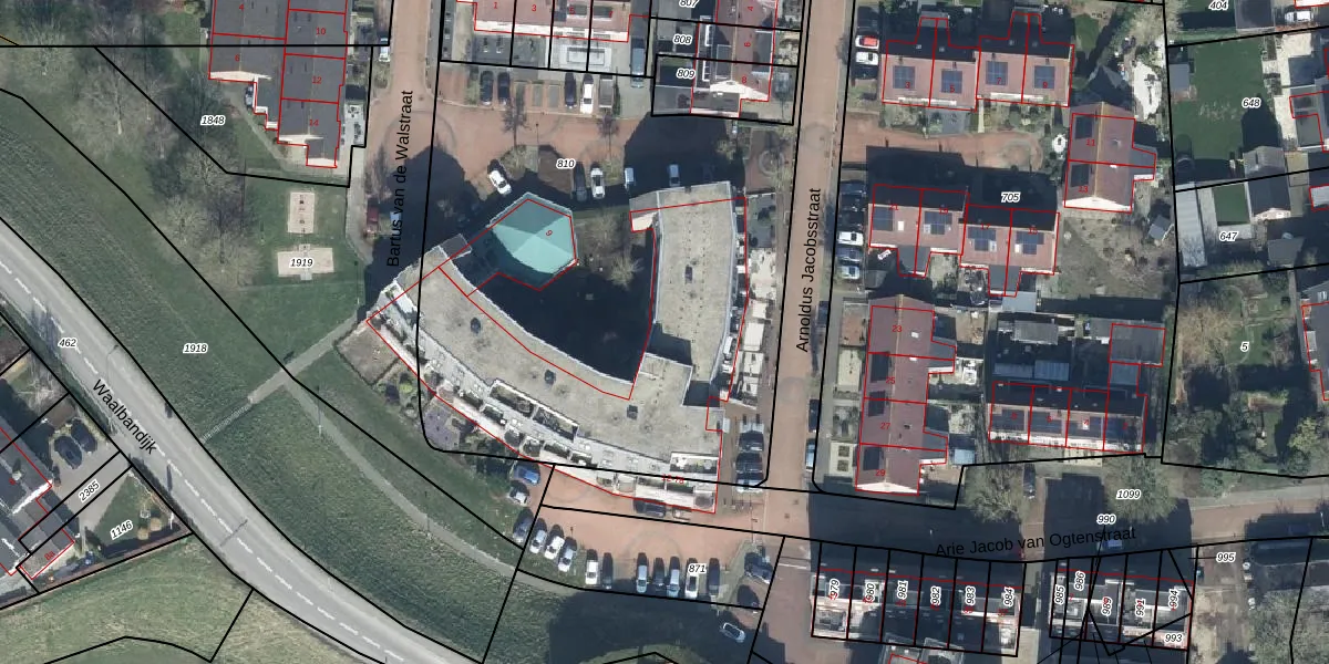 Het perceel waarop het adres ligt is OTN00-E-810. De afkorting 'OTN00' staat voor kadastrale gemeente Ochten. Het perceel is kleiner dan gemiddeld in Ochten. Het perceel is 3199 m² groot, terwijl het gemiddelde ligt op 3976,23 m². Het kleinste perceel in de kadastrale gemeente is 1 m² groot. De grootste perceeloppervlakte is 39,6 ha. Er zijn 35 adressen aanwezig op het perceel. De laatste wijziging in het de Basisregistratie Kadaster (BRK) was op 06-09-2010.