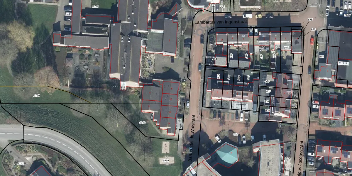 Het perceel waarop Bartus van de Walstraat 8 staat heeft een oppervlakte van 1,2 ha. Dit is een zeer groot perceel. De perceeloppervlakte wordt geregistreerd door het Kadaster. Gedetailleerde informatie over de maten van dit perceel kunt u vinden in het rapport Kadastrale kaart met maatvoering van Bartus van de Walstraat 8.