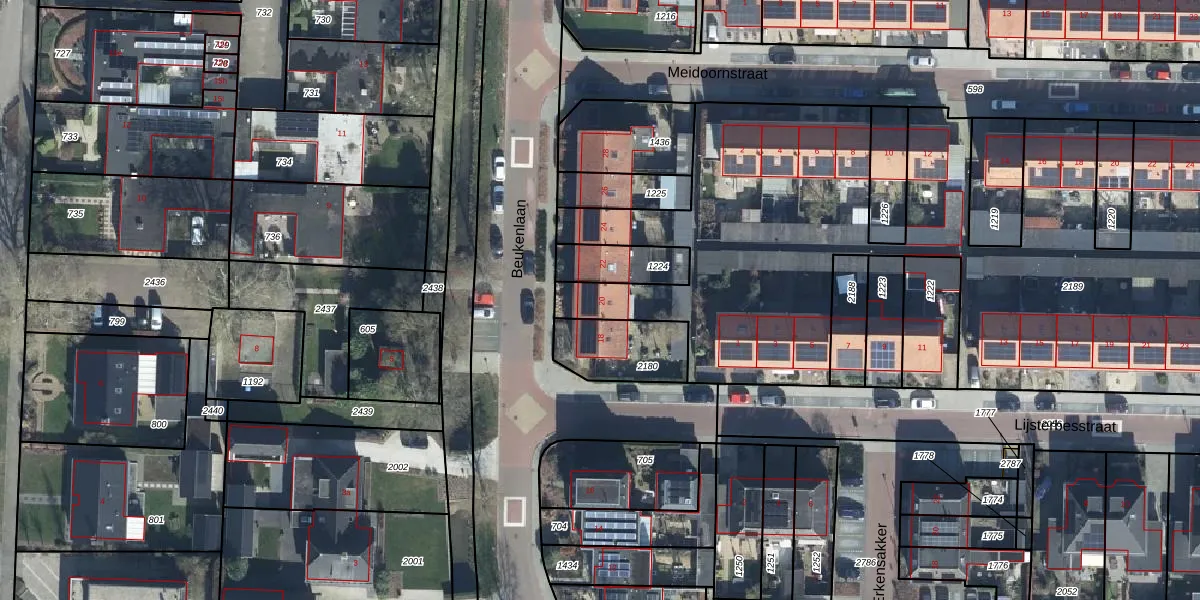Het perceel waarop Beukenlaan 20 staat heeft een oppervlakte van 3771 m². Dit is een zeer groot perceel. De perceeloppervlakte wordt geregistreerd door het Kadaster. Gedetailleerde informatie over de maten van dit perceel kunt u vinden in het rapport Kadastrale kaart met maatvoering van Beukenlaan 20.