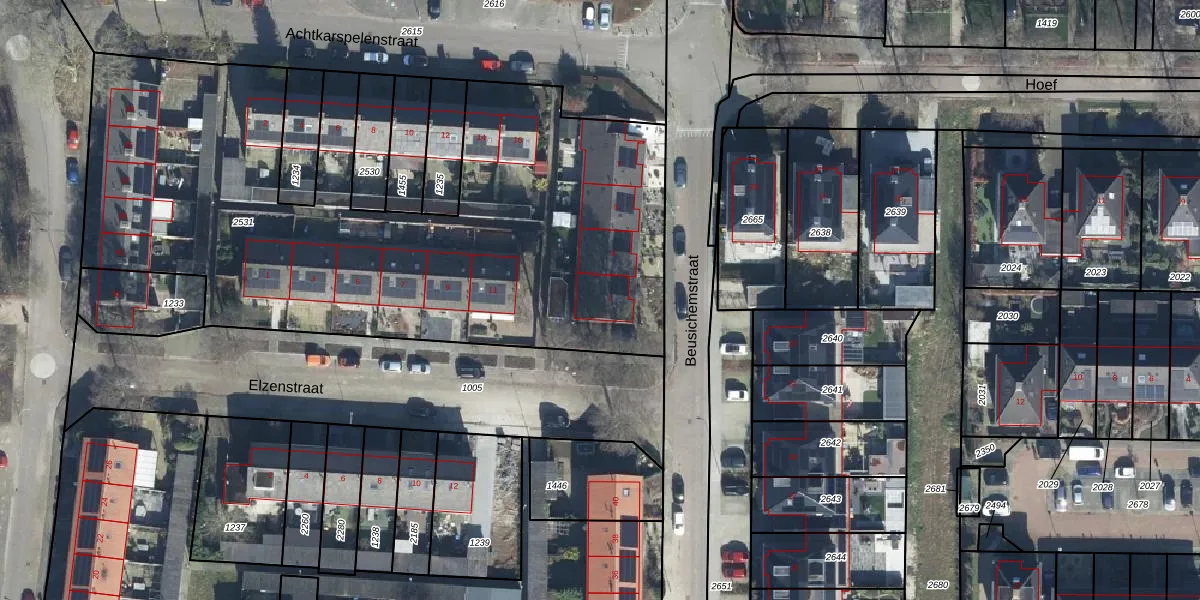 Het perceel waarop Beusichemstraat 1 staat heeft een oppervlakte van 3425 m². Dit is een zeer groot perceel. De perceeloppervlakte wordt geregistreerd door het Kadaster. Gedetailleerde informatie over de maten van dit perceel kunt u vinden in het rapport Kadastrale kaart met maatvoering van Beusichemstraat 1.