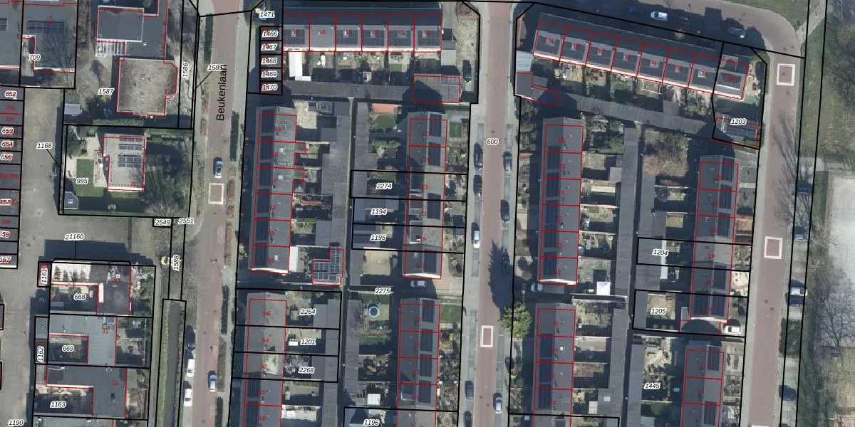 Gebruik de zoekbalk of klik op een perceel voor informatie over de adressen binnen dit perceel.