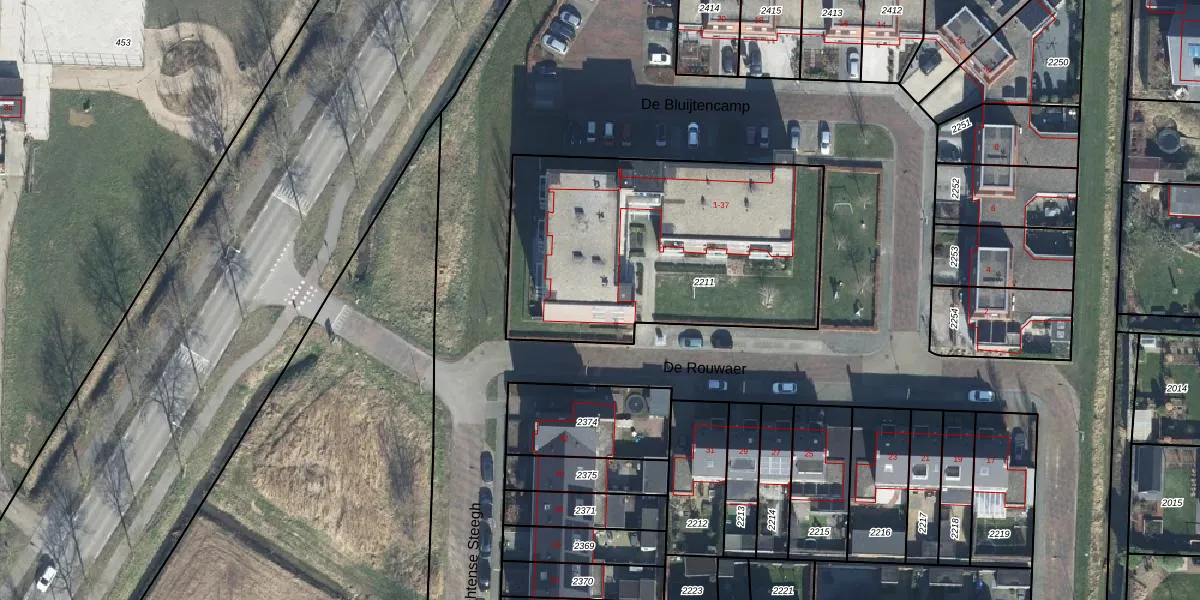 De Bluijtencamp 7 is gelegen op kadastraal perceel OTN00F2211. Deze kadastrale aanduiding is uniek en wordt gebruikt door het Kadaster om eigendomsrechten en andere zakelijke rechten vast te leggen. Het perceel maakt onderdeel uit van de kadastrale gemeente Ochten.