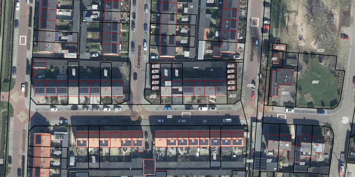 Gebruik de zoekbalk of klik op een perceel voor informatie over de adressen binnen dit perceel.