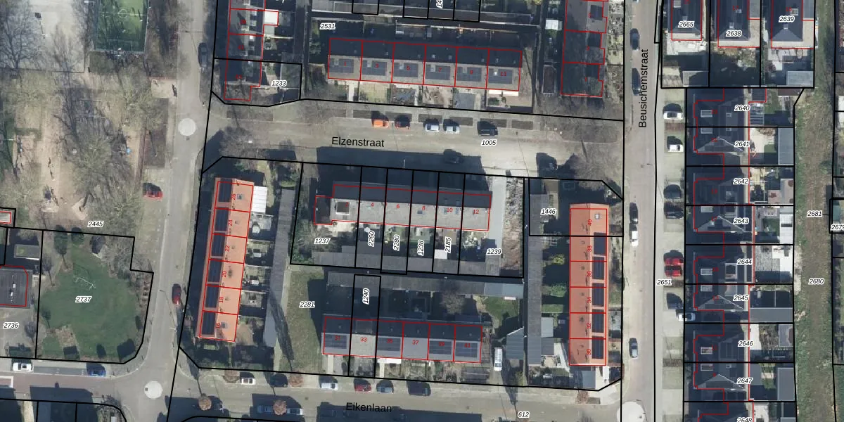 Gebruik de zoekbalk of klik op een perceel voor informatie over de adressen binnen dit perceel.