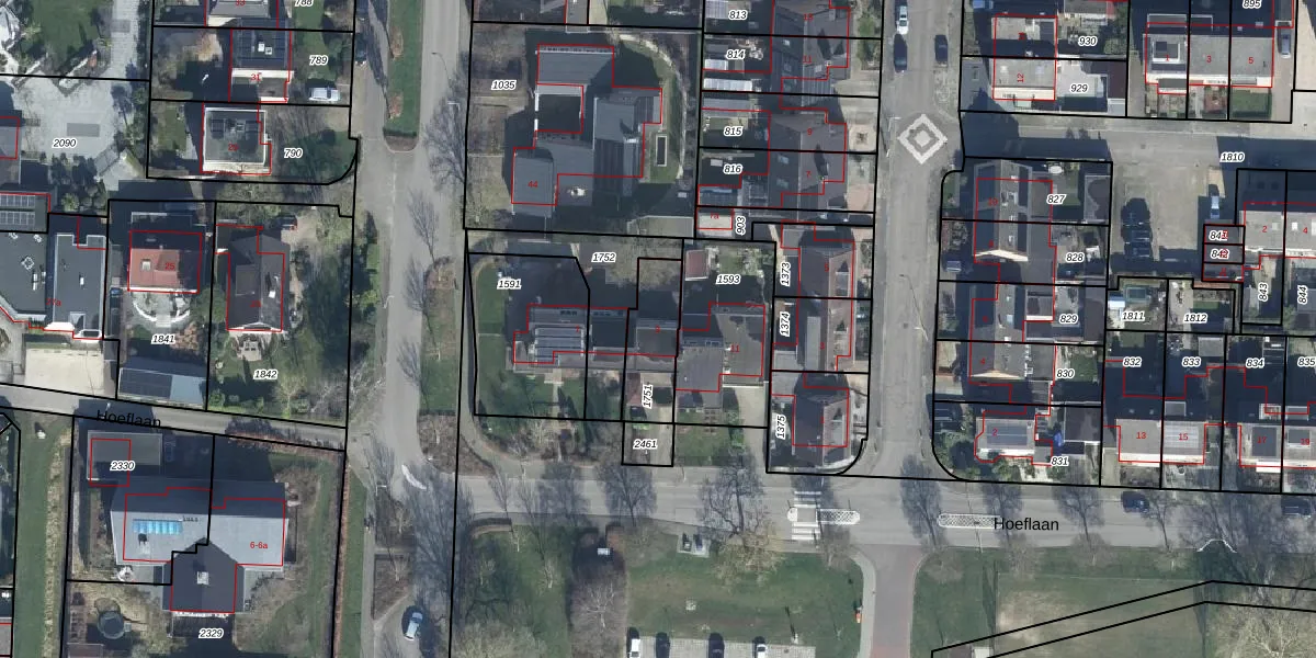 Gebruik de zoekbalk of klik op een perceel voor informatie over de adressen binnen dit perceel.