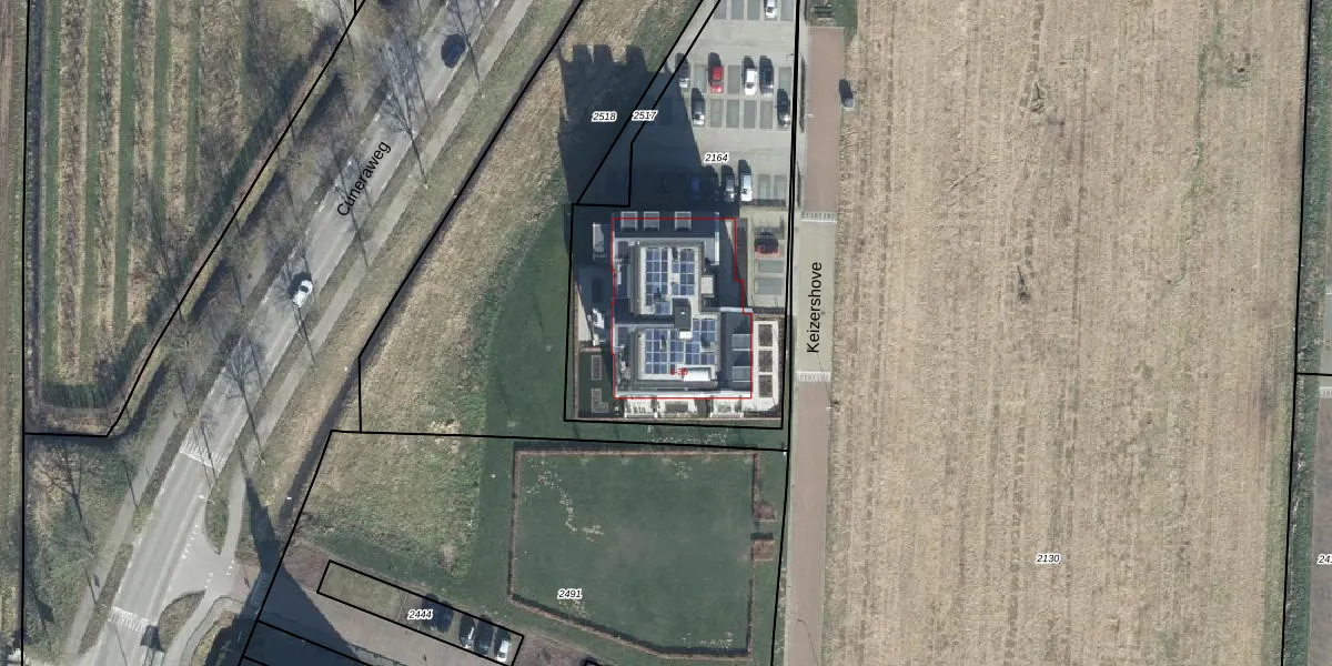 Het perceel waarop Keizershove 13 staat heeft een oppervlakte van 1705 m². Dit is een zeer groot perceel. De perceeloppervlakte wordt geregistreerd door het Kadaster. Gedetailleerde informatie over de maten van dit perceel kunt u vinden in het rapport Kadastrale kaart met maatvoering van Keizershove 13.