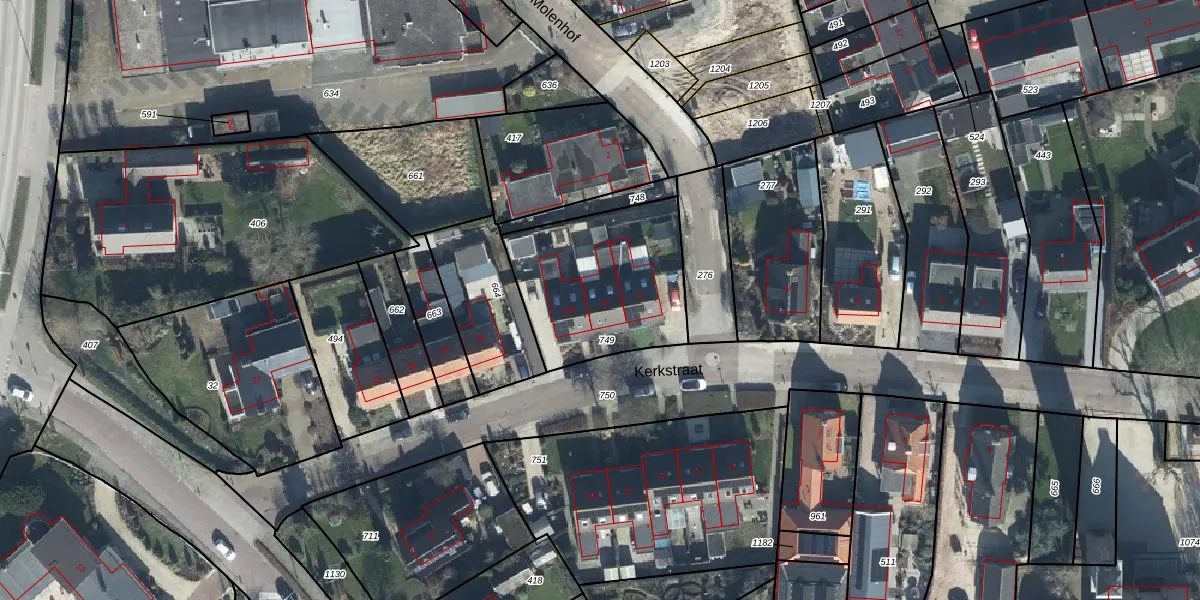 Het perceel waarop Kerkstraat 14 staat heeft een oppervlakte van 636 m². Dit is een groot perceel. De perceeloppervlakte wordt geregistreerd door het Kadaster. Gedetailleerde informatie over de maten van dit perceel kunt u vinden in het rapport Kadastrale kaart met maatvoering van Kerkstraat 14.