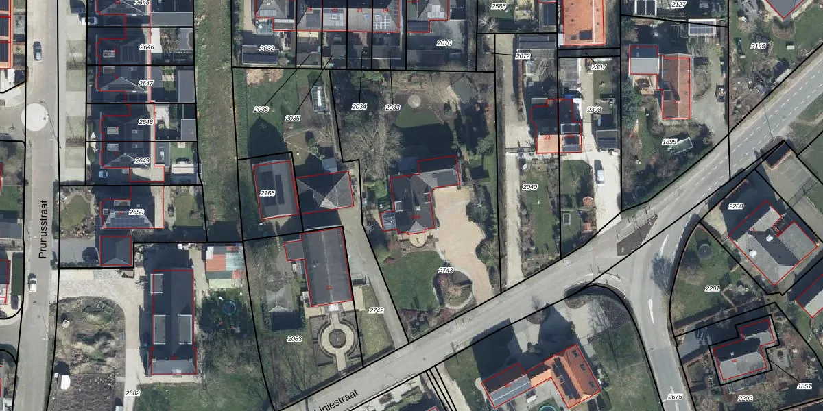 Gebruik de zoekbalk of klik op een perceel voor informatie over de adressen binnen dit perceel.