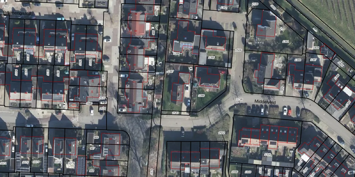 Gebruik de zoekbalk of klik op een perceel voor informatie over de adressen binnen dit perceel.