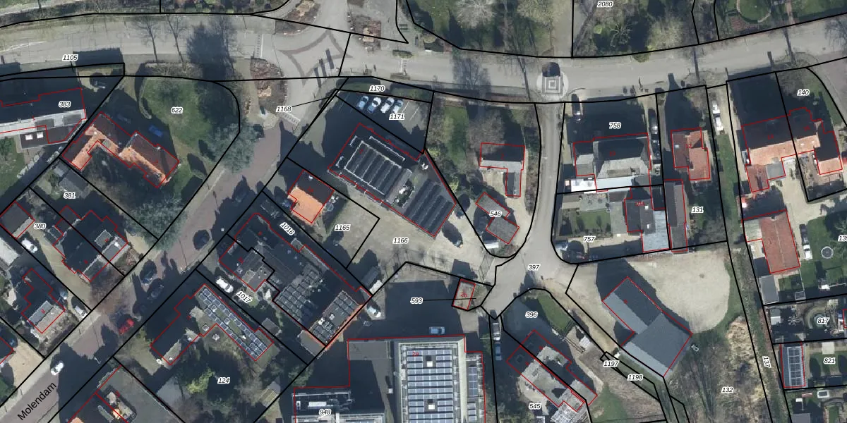 Het perceel waarop Molendam 1-c staat heeft een oppervlakte van 1054 m². Dit is een zeer groot perceel. De perceeloppervlakte wordt geregistreerd door het Kadaster. Gedetailleerde informatie over de maten van dit perceel kunt u vinden in het rapport Kadastrale kaart met maatvoering van Molendam 1-c.