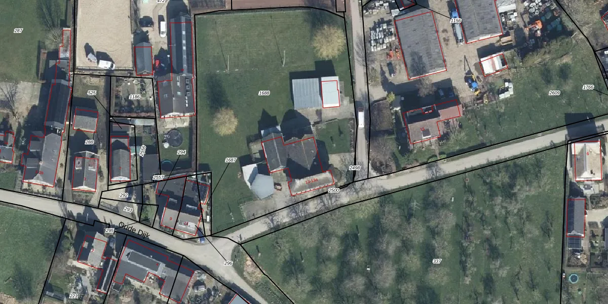 Het perceel waarop Oude Dijk 13-a staat heeft een oppervlakte van 3175 m². Dit is een zeer groot perceel. De perceeloppervlakte wordt geregistreerd door het Kadaster. Gedetailleerde informatie over de maten van dit perceel kunt u vinden in het rapport Kadastrale kaart met maatvoering van Oude Dijk 13-a.