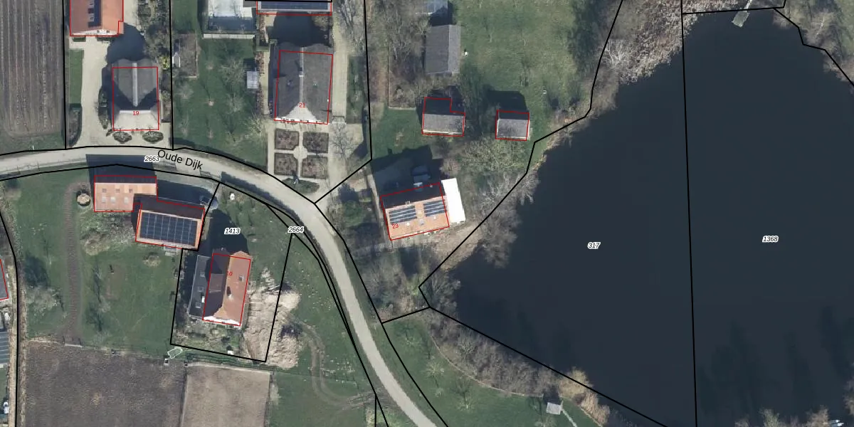 Het perceel waarop Oude Dijk 23 staat heeft een oppervlakte van 9480 m². Dit is een zeer groot perceel. De perceeloppervlakte wordt geregistreerd door het Kadaster. Gedetailleerde informatie over de maten van dit perceel kunt u vinden in het rapport Kadastrale kaart met maatvoering van Oude Dijk 23.