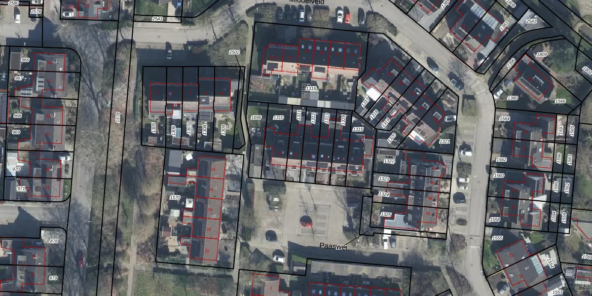 Gebruik de zoekbalk of klik op een perceel voor informatie over de adressen binnen dit perceel.