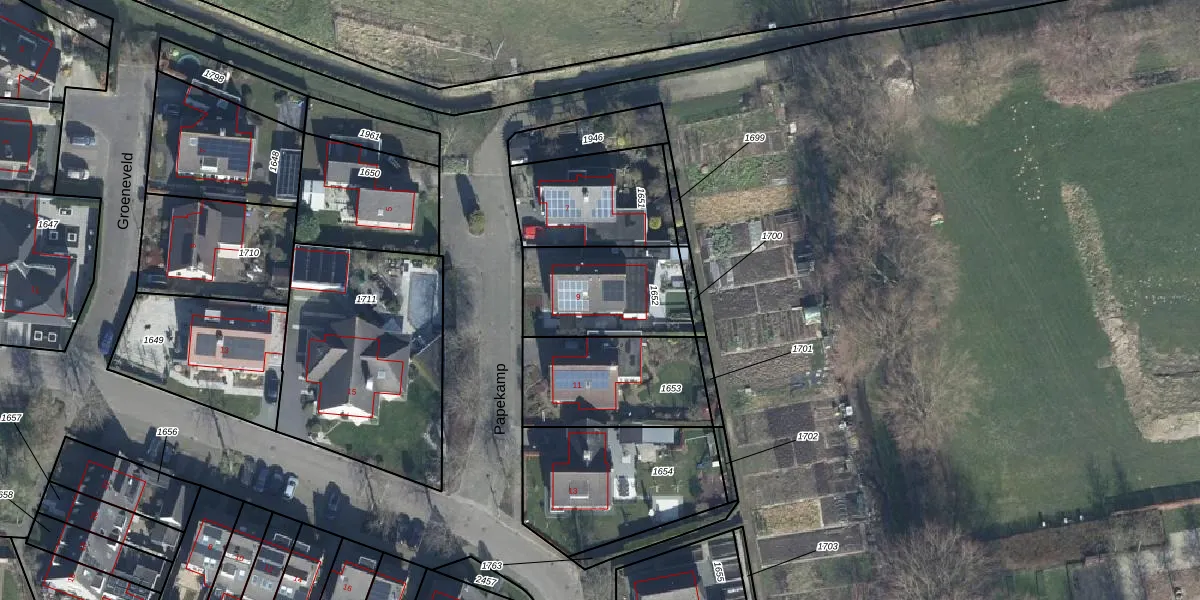 Het perceel waarop Papekamp 9 staat heeft een oppervlakte van 410 m². Dit is een groot perceel. De perceeloppervlakte wordt geregistreerd door het Kadaster. Gedetailleerde informatie over de maten van dit perceel kunt u vinden in het rapport Kadastrale kaart met maatvoering van Papekamp 9.