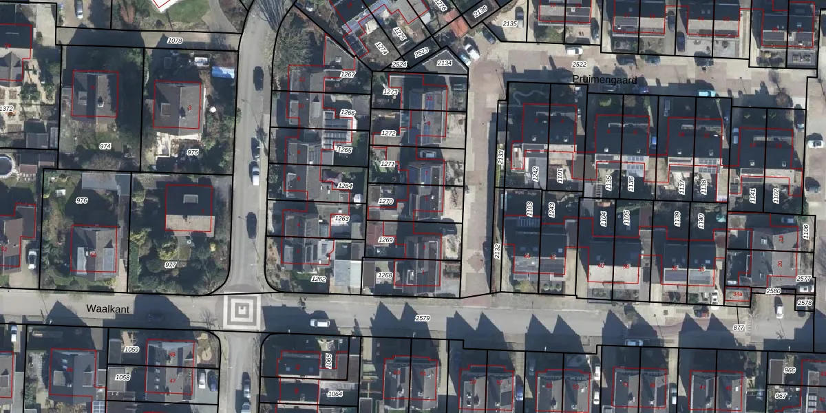 Gebruik de zoekbalk of klik op een perceel voor informatie over de adressen binnen dit perceel.
