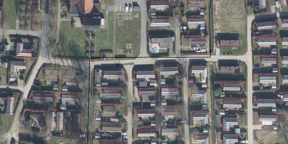 Het perceel waarop Rivierendal 16 staat heeft een oppervlakte van 4,7 ha. Dit is een zeer groot perceel. De perceeloppervlakte wordt geregistreerd door het Kadaster. Gedetailleerde informatie over de maten van dit perceel kunt u vinden in het rapport Kadastrale kaart met maatvoering van Rivierendal 16.