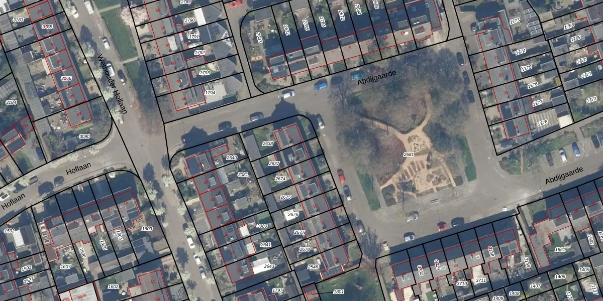 Gebruik de zoekbalk of klik op een perceel voor informatie over de adressen binnen dit perceel.