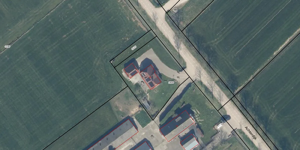 Het perceel waarop Achterdijk 34 staat heeft een oppervlakte van 1380 m². Dit is een zeer groot perceel. De perceeloppervlakte wordt geregistreerd door het Kadaster. Gedetailleerde informatie over de maten van dit perceel kunt u vinden in het rapport Kadastrale kaart met maatvoering van Achterdijk 34.