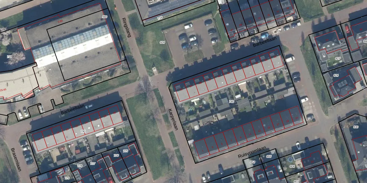 Het perceel waarop Barbeellaan 32 staat heeft een oppervlakte van 2957 m². Dit is een zeer groot perceel. De perceeloppervlakte wordt geregistreerd door het Kadaster. Gedetailleerde informatie over de maten van dit perceel kunt u vinden in het rapport Kadastrale kaart met maatvoering van Barbeellaan 32.