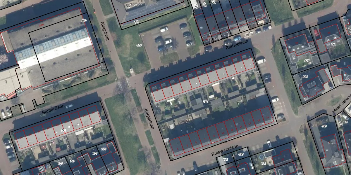 Het perceel waarop Barbeellaan 36 staat heeft een oppervlakte van 2957 m². Dit is een zeer groot perceel. De perceeloppervlakte wordt geregistreerd door het Kadaster. Gedetailleerde informatie over de maten van dit perceel kunt u vinden in het rapport Kadastrale kaart met maatvoering van Barbeellaan 36.
