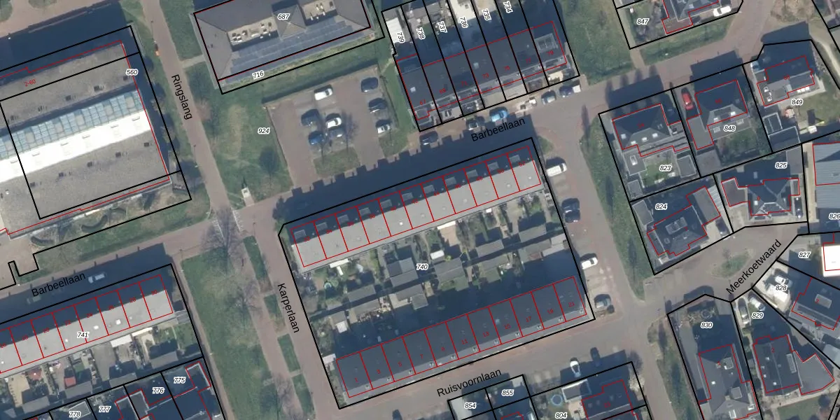 Het perceel waarop Barbeellaan 42 staat heeft een oppervlakte van 2957 m². Dit is een zeer groot perceel. De perceeloppervlakte wordt geregistreerd door het Kadaster. Gedetailleerde informatie over de maten van dit perceel kunt u vinden in het rapport Kadastrale kaart met maatvoering van Barbeellaan 42.