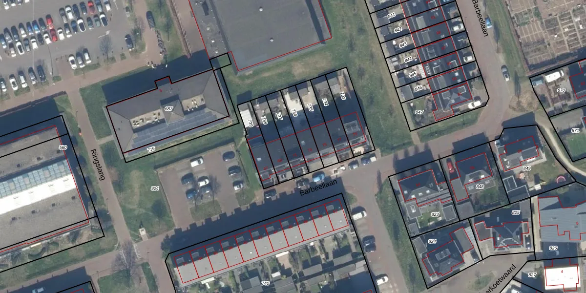 Gebruik de zoekbalk of klik op een perceel voor informatie over de adressen binnen dit perceel.