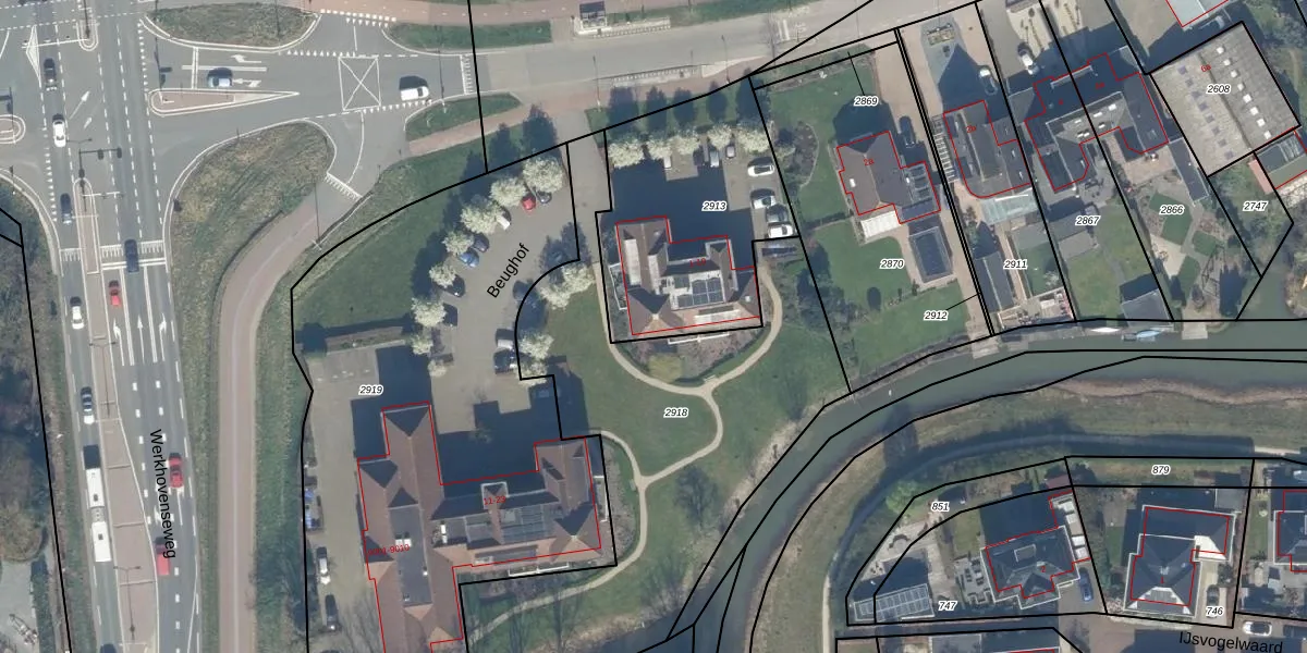 Het perceel waarop Beughof 2 staat heeft een oppervlakte van 896 m². Dit is een groot perceel. De perceeloppervlakte wordt geregistreerd door het Kadaster. Gedetailleerde informatie over de maten van dit perceel kunt u vinden in het rapport Kadastrale kaart met maatvoering van Beughof 2.